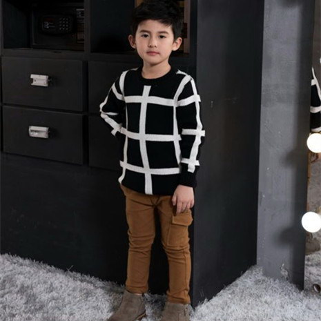 大方格圆领套头男童装